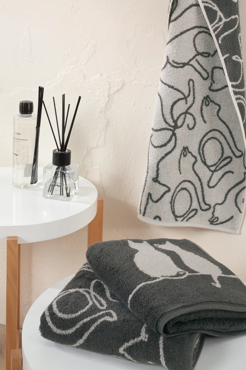 Elke handdoek uit deze serie straalt warmte, persoonlijkheid en stijl uit. De CUTE CATS EDITION – You & Me voelt heerlijk zacht aan op de huid en is dankzij het luxe frottiermateriaal perfect voor dagelijks gebruik. Het kattenmotief voegt een subtiele speelsheid toe aan je badkamer – zonder in te leveren op elegantie.