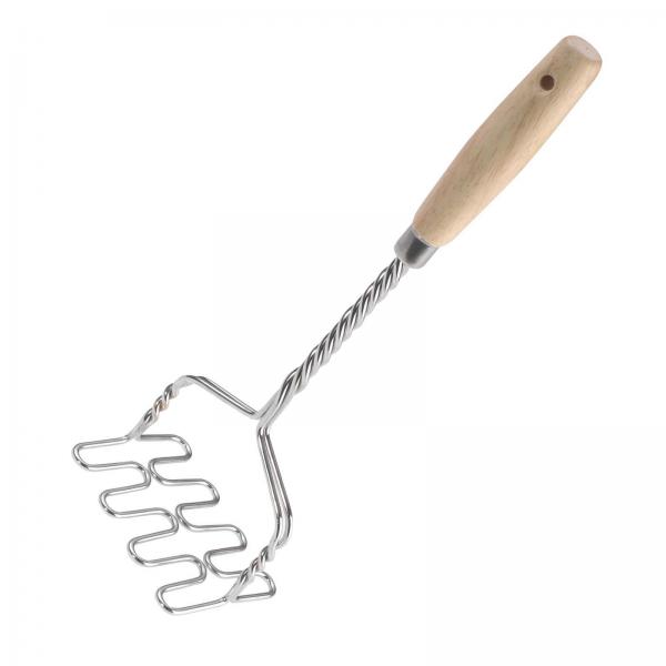 Met deze aardappelstamper van Westmark stamp je aardappels, wortelen en meer tot een puree. Ook maak je eenvoudig zelf babyvoeding door appels of bananen te stampen. De aardappelstamper heeft een stevige roestvrijstalen kop en een greep gemaakt van hout. Deze is bovendien voorzien van een ophangoog. Na gebruik mag de stamper niet in de vaatwasmachine.