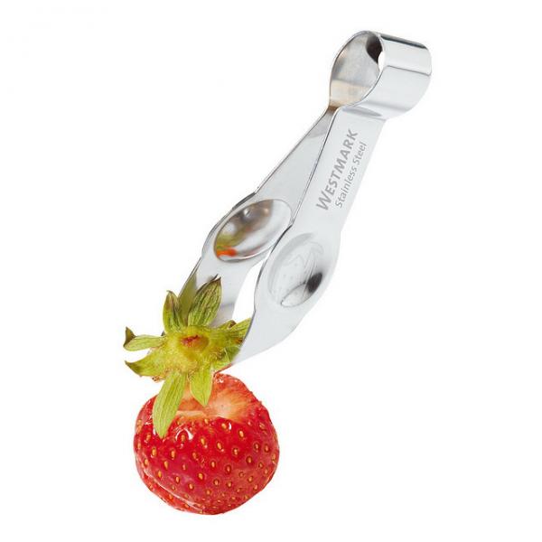 Met deze aardbeiontkroner van Westmark verwijder je de kroon van je aardbei snel en eenvoudig. De aardeiontkroner heeft een scherpe punt en randen voor eenvoudig ontkronen. De ontkroner is gemaakt van roestvrij staal en mag na gebruik in de vaatwasmachine. Ook geschikt voor het verwijderen van graten uit de vis.