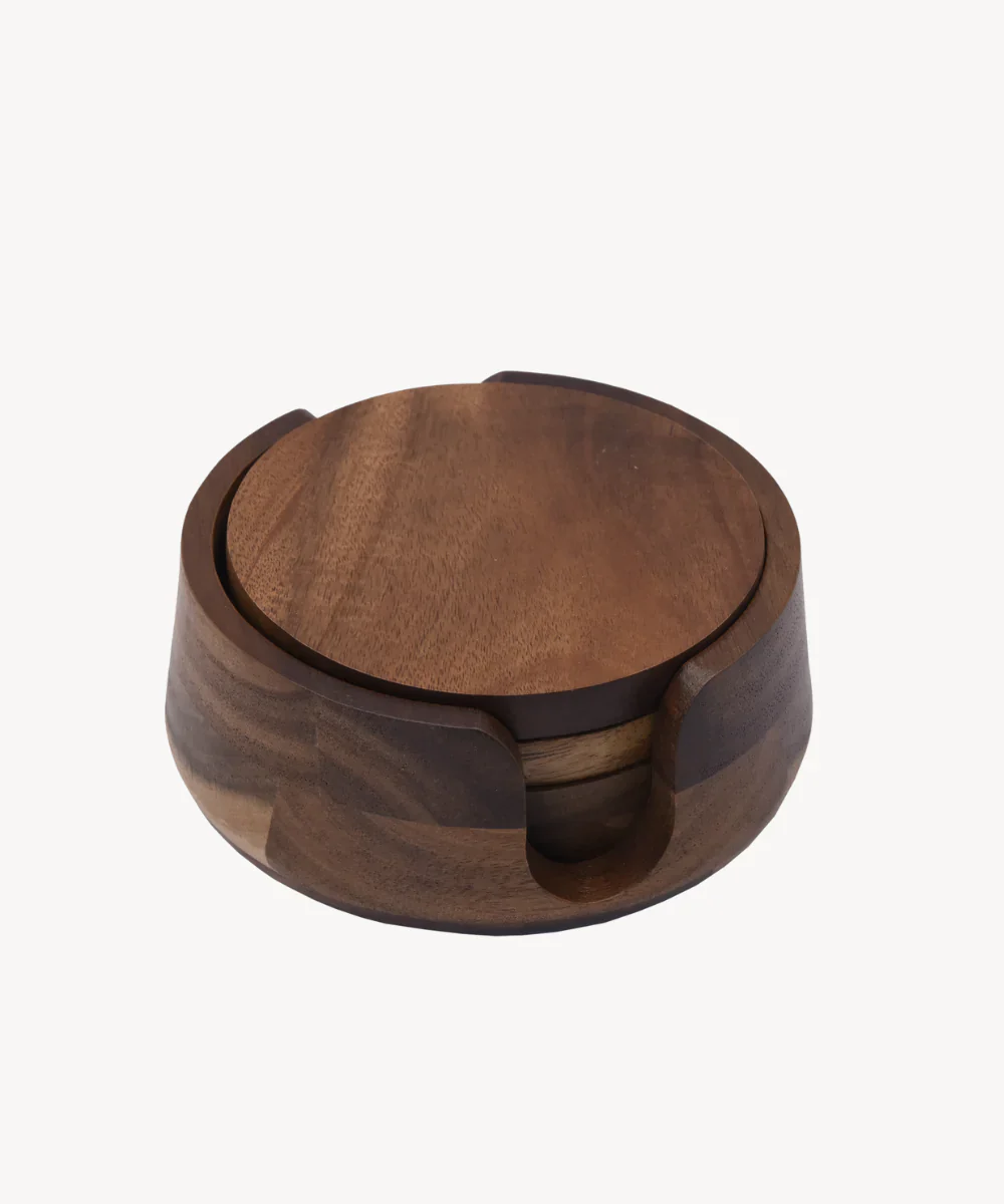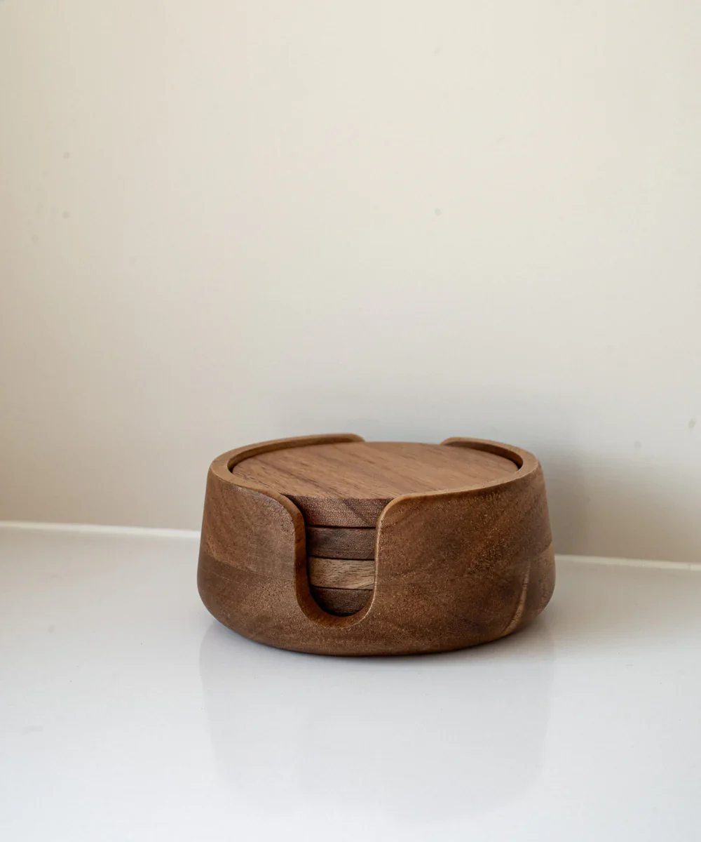 De Acacia Lumo onderzetterset combineert een warme houtlook met een functioneel design.