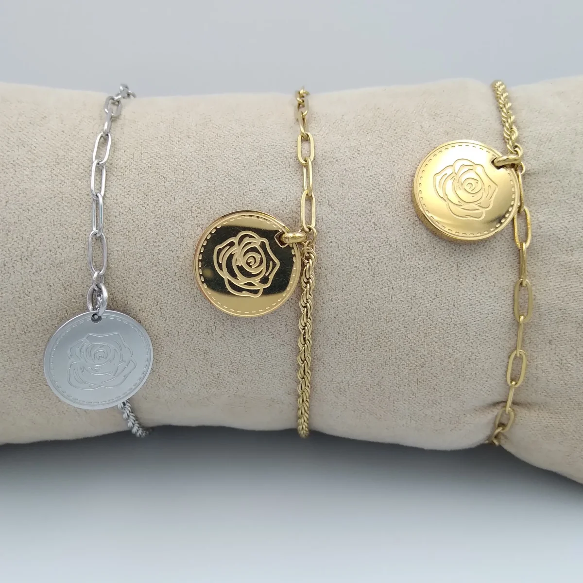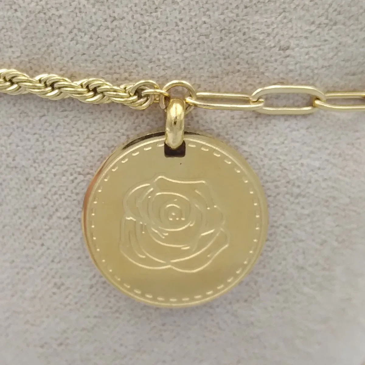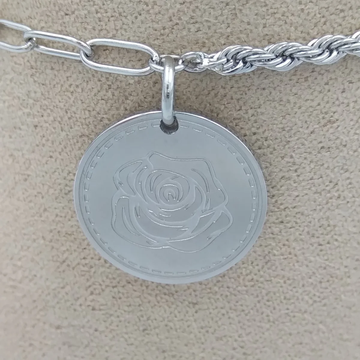 Armband met roos-hangertje. Ook verkrijgbaar aan een ketting.