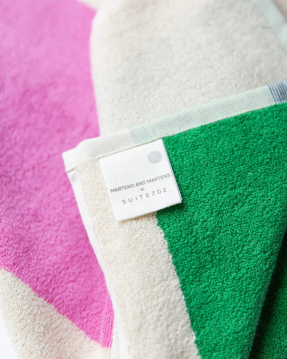 Bij SUITE702 is het onze passie om kleur toe te voegen aan de momenten van welverdiende rust. Onze Martens & Martens collectie is geïnspireerd op het kunstproject ‘Colours on the Beach’ van kunstenaar Karel Martens en biedt een uitgebreid assortiment aan luxe handdoeken. Bovendien bieden we diverse sets aan, zodat je meerdere handdoeken in een mix van opvallende kleuren kunt aanschaffen. Van standaard handdoeken van 50×100 cm en badhanddoeken van 70×140 tot gastendoekjes van 30x50cm, badmatten van 50×80 cm en strandlakens van 90×180 cm. In deze collectie is het standaardgewicht voor de meeste handdoeken 550 g/m2. Uitzonderingen hierop zijn de strandlakens, met een gewicht van 420 g/m2 en de badmatten, die zwaarder zijn met een gewicht van 1000 g/m2.