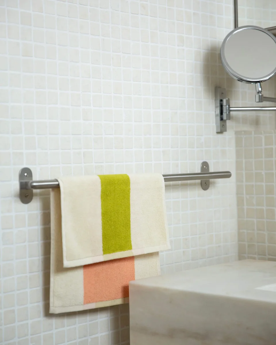 Bij SUITE702 is het onze passie om kleur toe te voegen aan de momenten van welverdiende rust. Onze Martens & Martens collectie is geïnspireerd op het kunstproject ‘Colours on the Beach’ van kunstenaar Karel Martens en biedt een uitgebreid assortiment aan luxe handdoeken. Bovendien bieden we diverse sets aan, zodat je meerdere handdoeken in een mix van opvallende kleuren kunt aanschaffen. Van standaard handdoeken van 50×100 cm en badhanddoeken van 70×140 tot gastendoekjes van 30x50cm, badmatten van 50×80 cm en strandlakens van 90×180 cm. In deze collectie is het standaardgewicht voor de meeste handdoeken 550 g/m2. Uitzonderingen hierop zijn de strandlakens, met een gewicht van 420 g/m2 en de badmatten, die zwaarder zijn met een gewicht van 1000 g/m2.