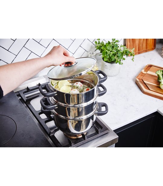 - Ideaal voor het stomen van groenten, vis, dim sum,… Koken met stomen = meer bewaarde vitamines, meer smaak en meer voedingsstoffen.