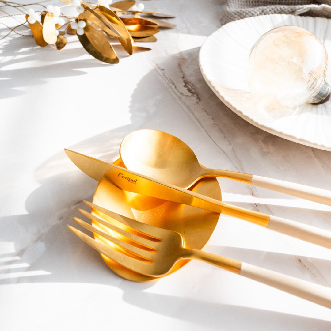 Je legt de premium RVS (met of zonder 24K verguld) houder naast het bord neer en legt daar het bestek op. Van links naar rechts: vork, mes, lepel. Eventueel leg je de lepel in de kom als je een soepje vooraf serveert, up to you, het past in ieder geval allemaal op de houder.[/vc_column_text][/vc_column][/vc_row][vc_row row_height_percent=”0″ overlay_alpha=”50″ gutter_size=”3″ column_width_percent=”100″ shift_y=”0″ z_index=”0″ uncode_shortcode_id=”210743″][vc_column width=”1/1″][vc_row_inner limit_content=””][vc_column_inner column_width_percent=”100″ gutter_size=”3″ overlay_alpha=”50″ shift_x=”0″ shift_y=”0″ shift_y_down=”0″ z_index=”0″ medium_width=”0″ mobile_width=”0″ width=”1/2″ uncode_shortcode_id=”208817″][vc_single_image media=”18136670″ media_width_percent=”80″ media_ratio=”one-one” uncode_shortcode_id=”200283″ el_class=”maxwidth100″][/vc_column_inner][vc_column_inner width=”1/2″][vc_empty_space empty_h=”3″ mobile_visibility=”yes”][vc_custom_heading subheading=”Leg je gouden Cutipol bestek op deze mooie gouden bestekhouder & style af met de Cutipol servetring!” uncode_shortcode_id=”135217″]Style af met…[/vc_custom_heading][vc_button button_color=”accent” border_width=”0″ link=”url:https%3A%2F%2Fwww.tablethings.com%2Fproduct%2Fservetring-cutipol%2F%3Fattribute_pa_afwerking%3Dmat-goud|title:servetirng” button_color_type=”uncode-palette” uncode_shortcode_id=”386040″]Shop hier de servetring[/vc_button][/vc_column_inner][/vc_row_inner][/vc_column][/vc_row][vc_row row_height_percent=”0″ overlay_alpha=”50″ gutter_size=”3″ column_width_percent=”100″ shift_y=”0″ z_index=”0″ uncode_shortcode_id=”210743″][vc_column width=”1/1″][vc_row_inner limit_content=””][vc_column_inner width=”1/2″][vc_empty_space empty_h=”3″ mobile_visibility=”yes”][vc_custom_heading subheading=”Leg je RVS Cutipol bestek op deze RVS bestekhouder & style af met de Cutipol servetring!” uncode_shortcode_id=”292681″]Of in het RVS…[/vc_custom_heading][vc_button button_color=”accent” border_width=”0″ link=”url:https%3A%2F%2Fwww.tablethings.com%2Fproduct%2Fservetring-cutipol%2F%3Fattribute_pa_afwerking%3Dmat-rvs|title:servetirng” button_color_type=”uncode-palette” uncode_shortcode_id=”134581″]Shop hier de servetring[/vc_button][/vc_column_inner][vc_column_inner column_width_percent=”100″ gutter_size=”3″ overlay_alpha=”50″ shift_x=”0″ shift_y=”0″ shift_y_down=”0″ z_index=”0″ medium_width=”0″ mobile_width=”0″ width=”1/2″ uncode_shortcode_id=”208817″][vc_single_image media=”18136653″ media_width_percent=”80″ media_ratio=”one-one” uncode_shortcode_id=”201348″ el_class=”maxwidth100″][/vc_column_inner][/vc_row_inner][/vc_column][/vc_row][vc_row row_height_percent=”0″ override_padding=”yes” h_padding=”2″ top_padding=”3″ bottom_padding=”3″ back_color=”color-xsdn” overlay_alpha=”50″ gutter_size=”3″ column_width_percent=”100″ shift_y=”0″ z_index=”0″ uncode_shortcode_id=”138880″ back_color_type=”uncode-palette”][vc_column width=”1/1″][vc_row_inner limit_content=””][vc_column_inner width=”1/2″][vc_single_image media=”18565″ media_width_use_pixel=”yes” alignment=”center” uncode_shortcode_id=”935055″ media_width_pixel=”110″][vc_column_text uncode_shortcode_id=”278821″]