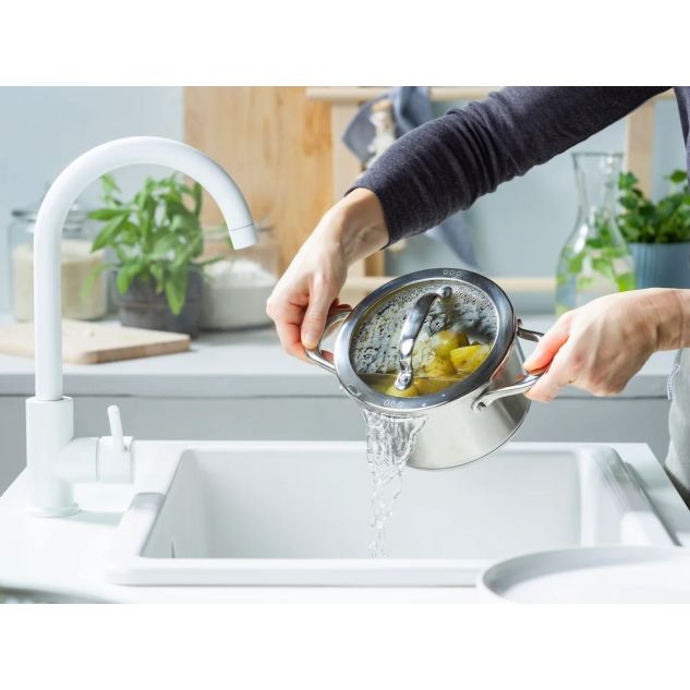 Wat de BK Twist pannenset echt onderscheidt in vergelijking tot een doorsnee pannenset, is het unieke afgietsysteem. Nooit meer gedoe met het afgieten van kokend water of hete sauzen; het slimme ontwerp van de deksels maakt het afgieten moeiteloos en veilig. Een innovatie die elke kookervaring vereenvoudigt.