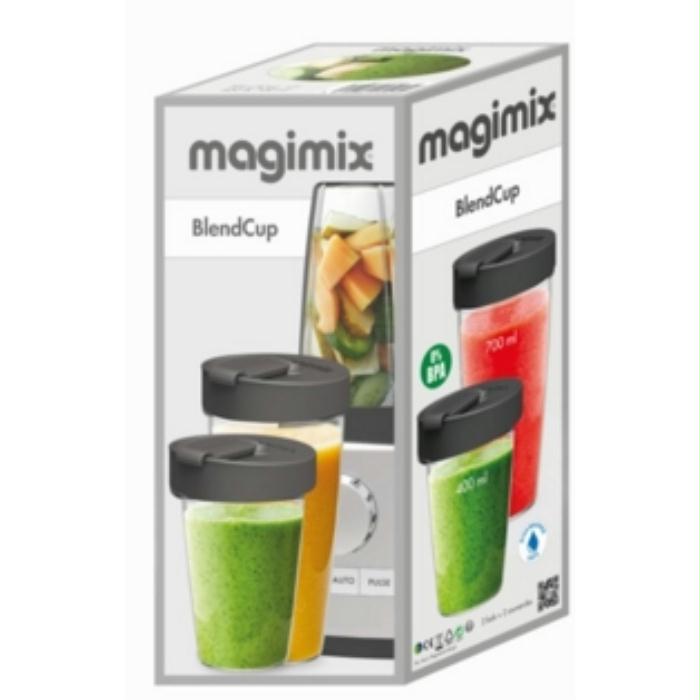 Deze set van 2 blendercups die passen op je Magimix blender. Inhoud 400ml en 700ml. Samen met het mes van je blender maak je in de beker direct je smoothie-to-go.