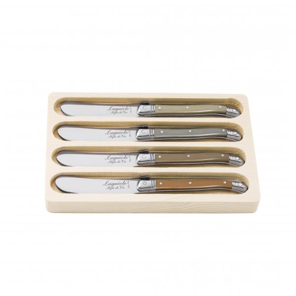 De kleurrijke botermessen Treasure uit de Premium Line van Laguiole Style de Vie zet je direct wat vrolijks op tafel. Elk mesje heeft zijn eigen kleur en het lemmet heeft een dikte van 1,2 mm. De messen zijn vaatwasmachinebestendig. Je kunt je set compleet maken met de bijbehorende kaasmessenset.