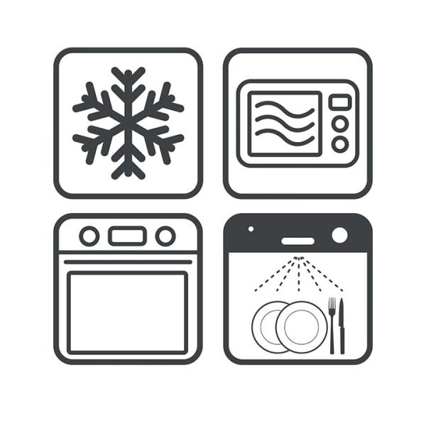– Geschikt voor in de oven (250°C), magnetron, diepvriezer (-20°C), vaatwasser