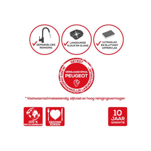 – Hoogwaardig verglaasd email: snelle reiniging, langdurige kleur en glans, slijtvastheid: getest in onafhankelijk laboratorium