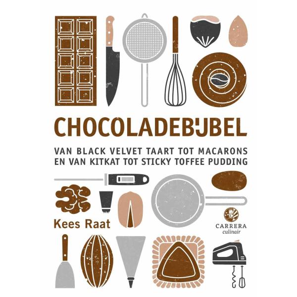 Met meer dan 150 recepten, handige tips en aanwijzingen laat chocolatier Kees Raat in Chocoladebijbel de oneindige mogelijkheden van chocolade zien. Aan de hand van heldere instructies en stap-voor-stapfotografie leer je alles over het maken van de lekkerste chocoladerecepten.