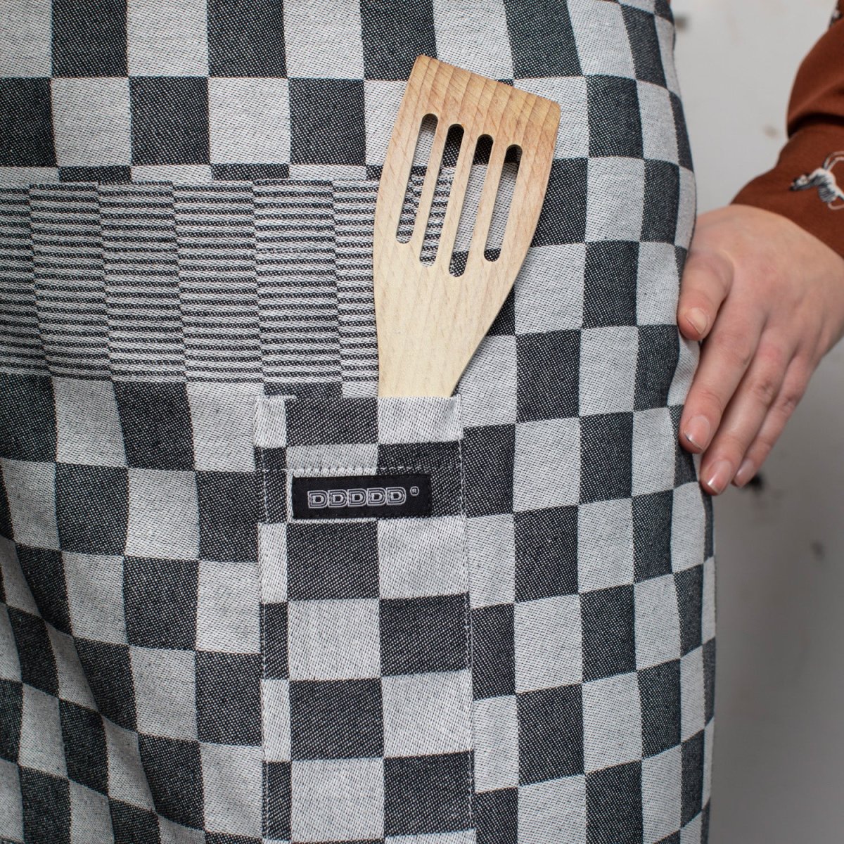 De BBQ serie is aangevuld met de populaire geruite pompdoek schort! De 100% kwaliteitskatoen is gemakkelijk te wassen, van duurzame kwaliteit en daarom vaak te gebruiken. Het schort bevat twee voorvakken die ruimte bieden om kookgerei, kruiden of een DDDDD theedoek op te bergen. Verder is het schort voorzien van een nekband met een handige bretelclip sluiting en is de tailleband verstelbaar. Het schort heeft de afmeting 90 x 85 cm en is een ‘one size fits all’