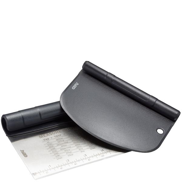 De deegsnijder is voorzien van een duidelijke maatverdeling in centimeters en inches, én een handige omrekentabel – altijd praktisch bij het afwegen of omrekenen van hoeveelheden tijdens het bakken. Beide onderdelen zijn ergonomisch gevormd en stapelbaar, dus ook nog eens ruimtebesparend.