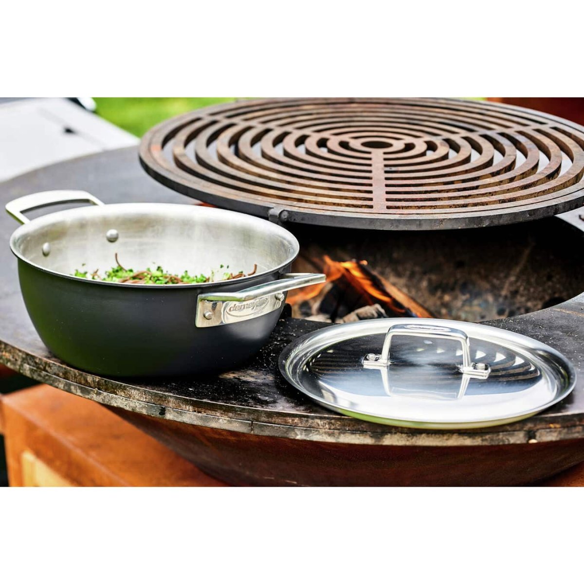 - 5 lagenmateriaal voor het perfect verdelen van de hitte zorgt voor een optimaal resultaat. De magnetische bodem is ook geschikt voor indoor kookvuren, inclusief inductie.