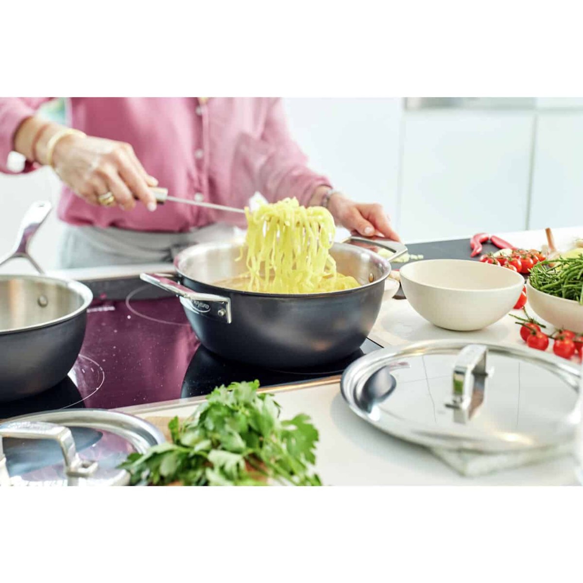 - Zwarte en hittebestendige keramische coating aan de buitenzijde beschermt je kookgerei tot 400°C.