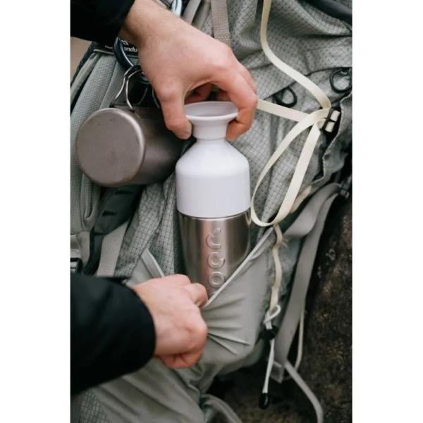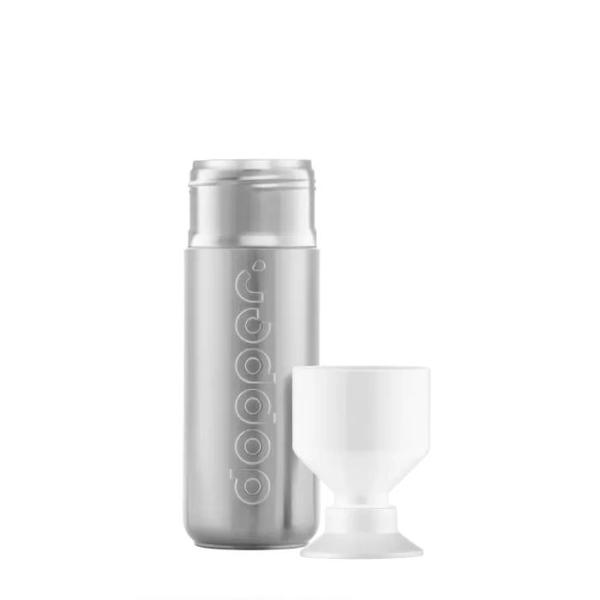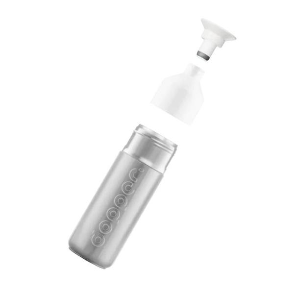 Wat het weer ook doet, de 580 ml Dopper Insulated Silver is de perfecte handlanger waarmee jij voor water uit de (warmwater-)kraan kiest. Wind, hagel of een meter sneeuw: in deze thermosfles blijft je water, thee of koffie 9 uur warm of 24 uur koud. En blijf jij bijdragen aan het redden van onze oceanen. Het hele jaar.