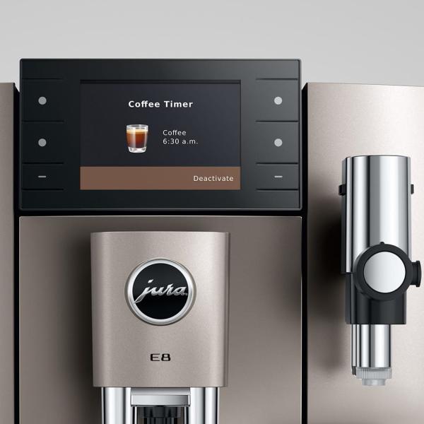 De E8 fascineert ook met intelligente technologie zoals de Coffee Timer. Hiermee kunt u uw ochtendkoffie programmeren via de app J.O.E.® en genieten van vers gemalen en bereide koffie zodra u opstaat.
