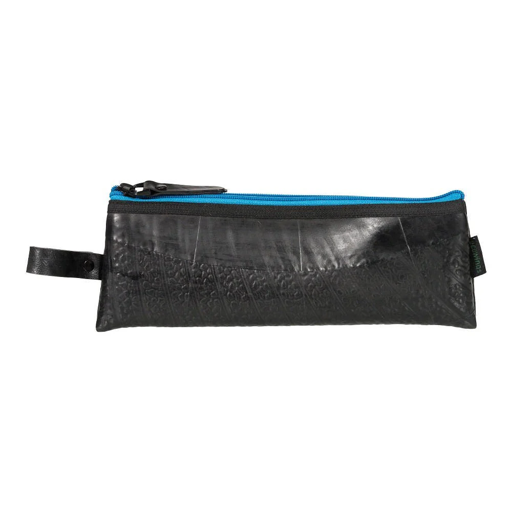 Met het handgemaakte Slik Etui van geupcyclede binnenband hoef je nooit meer te zoeken naar losse pennen of verdwaalde make-up. Vanaf nu hou je alles bij elkaar in dit handige opbergwondertje met slimme draaglus. En je hoeft ook niet meer bang te zijn dat punten van passers in je vingers prikken want die komen niet door het sterke rubber heen.