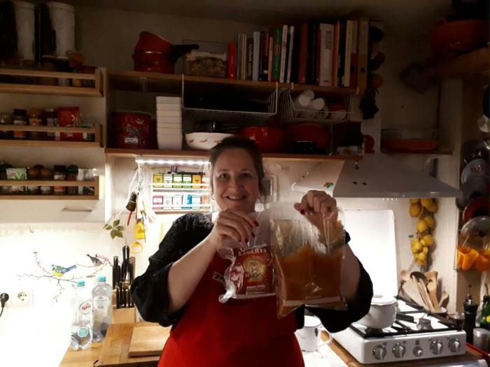 Vandaag vierde we de verjaardag van mijn man. Koffie met wat lekkers en daarna (onder het schaatsen) een kopje soep met een broodje. Na een verjaardag heb ik altijd soep over, bang dat ik te weinig heb, maar en ook filter koffie. Normaal drinken we koffie van bonen die we zelf malen maar als we voor een hele groep koffie moeten maken, blijft filter koffie wel zo handig.