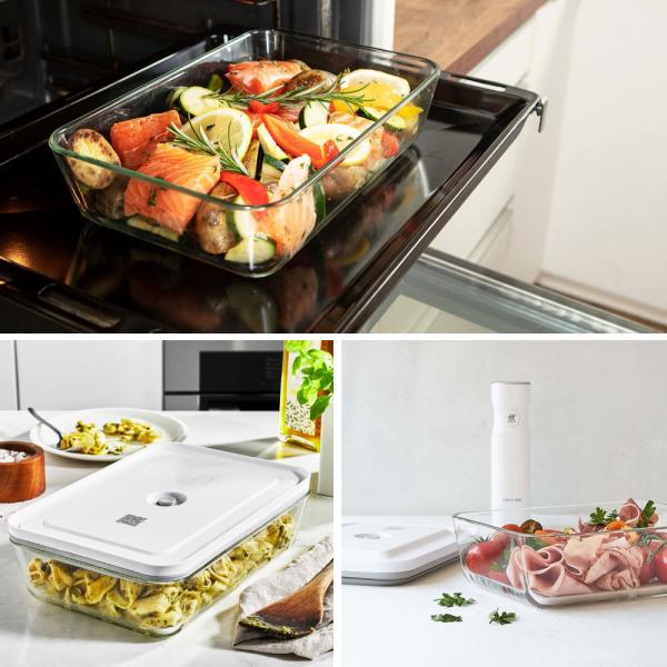 Winkel naar hartenlust en bewaar spinazie, brood, vis en alle andere ingrediënten in de grote potten van het vacuümsysteem.