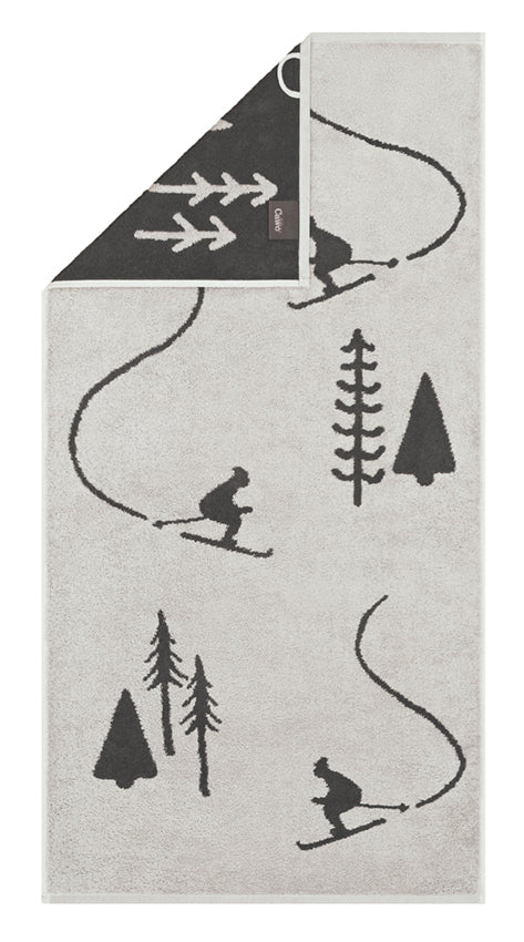 Gastendoek – Winter Edition Skiër – set van 6 – platin/basalt – 30×50 cm