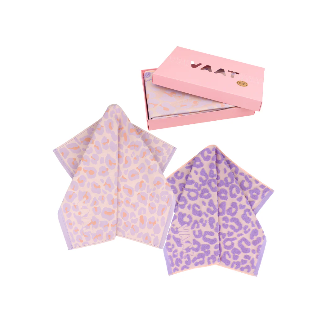 Een gift box met daarin een thee- en keukenhanddoek met ingeweven leopard-dessin — een no-brainer als je het ons vraagt.