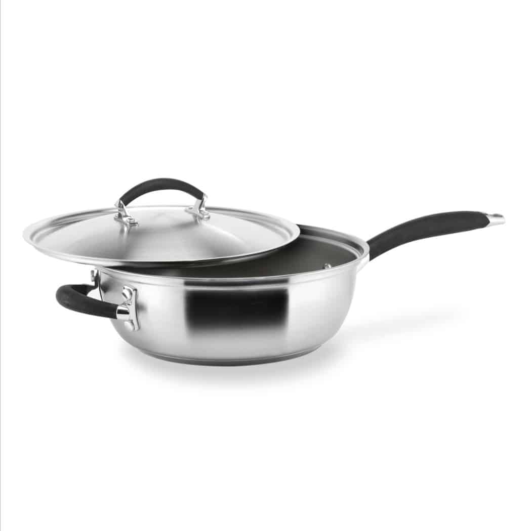 Extra diepe hapjes/chefspan met een greblon keramische antikleeflaag. Mooie rvs buitenkant met sandwichbodem en grepen in silliconen. Een pan die multifuntioneel inzetbaar is en door de duurzame keramische antikleeflaag uw vriend in de keuken wordt voor vele jaren.