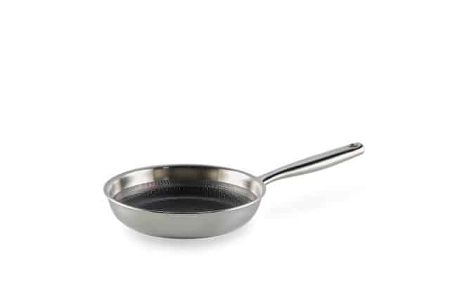 Zoals de naam al doet vermoeden is deze koekenpan uit de Habonne Hybrid lijn een hybride pan. Hybride betekend in dit geval een mix van een rvs- en een antikleefpan. De drielaags pan (tri-ply) is voorzien van een 100% PFAS vrije keramische coating. Deze coating ligt iets verdiept in het hexagon motief waardoor deze goed bestand is tegen krassen en beschadigingen. Een pan voor jaren die ook nog eens een mooie korst op je product bakt en gemakkelijk in de reiniging is. Vanzelfsprekend te gebruiken op alle warmtebronnen. 10 jaar fabrieksgarantie