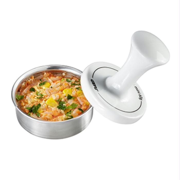 Maak zelf eenvoudig hamburgers. Doe het gehakt in de roestvrijstalen schaal en pers deze aan met de porceleine stamper. Dankzij de welving houdt de hamburger zijn vorm en wordt dankzij de gleuven snel gaat. Bak je zelfgemaakt hamburger in de koekenpan, op de grill of barbecue.