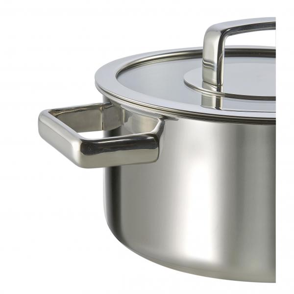 De Royal “Triply” van Habonne is zo’n pan van meerlagenmateriaal, met gesloten schenkrand en uiteraard geschikt voor alle warmtebronnen.