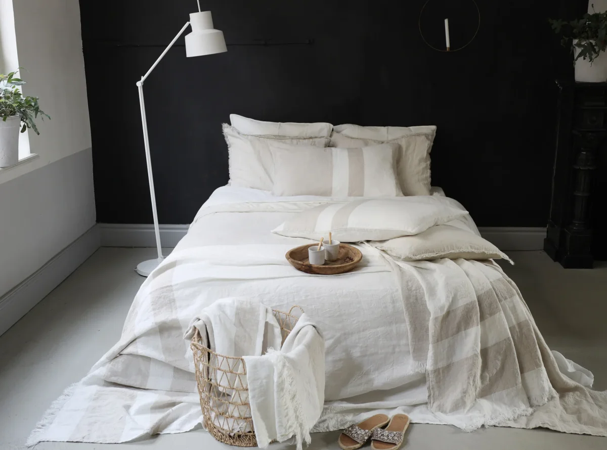Plaid Kate met bijpassende kussens is werkelijk een pareltje! Gemaakt van het fijnste linnen en verkrijgbaar in verschillende kleurvariaties en maten. Combineer het plaid met de kussens, die verkrijgbaar zijn met of zonder strepen.