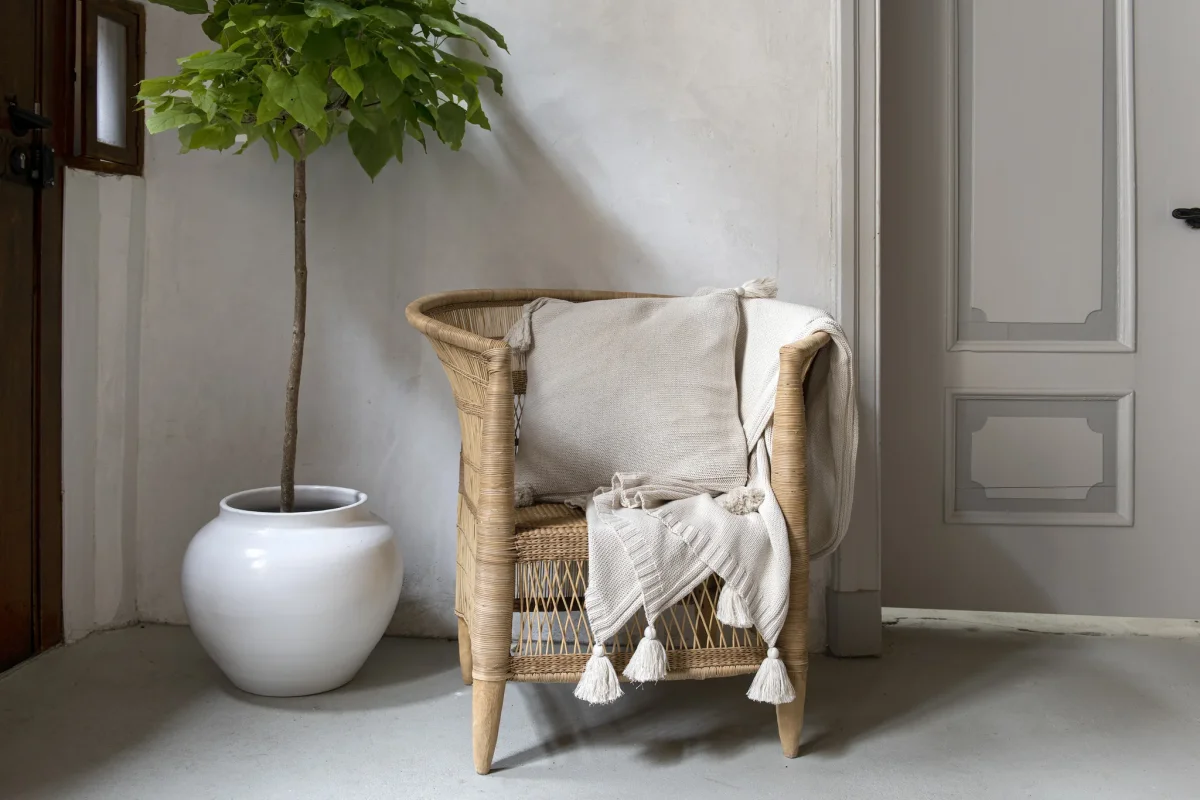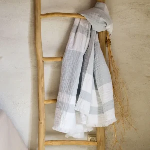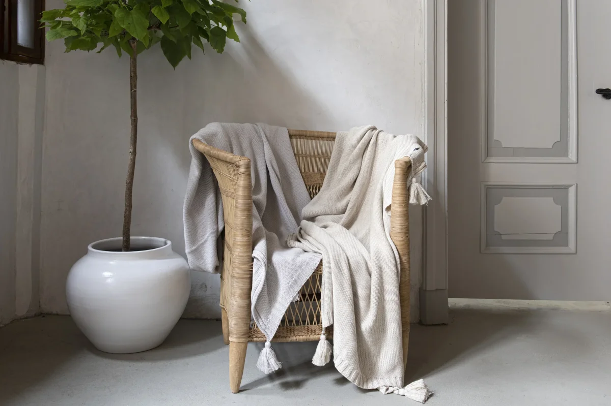 Grof geweven plaid van 100% katoen. Het stiksel aan de zijkanten en de kwasten aan de uiteinden geven de plaid een bohemien twist.