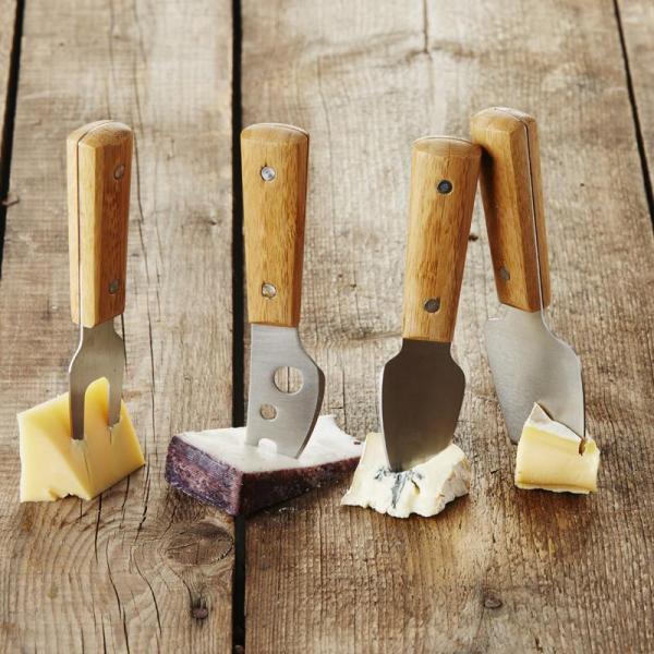 Een heerlijk kaasplankje als dessert? Verzorg het dessert tot in de puntjes met deze set van 4 kaasmessen uit bamboe van Point-Virgule.