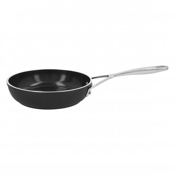 Met deze robuuste en tegelijk lichte Alu Pro 5 bakpan van 20 cm bak je naar hartenlust kippenspiesjes, cordon blue, witlof, aardappelschijfjes, gepaneerde groenteburgers enzovoort, zonder kleven. De krasbestendige keramische Ceraforce® antikleeflaag – het gezonde alternatief – biedt je bovendien een gezonde oplossing. Je bereikt een meer dan geslaagd resultaat met minder vetstof. Gebruik enkel accessoires van hout of silicone, om beschadiging te voorkomen. De body in gesmeed aluminium is extra dik en meer dan stevig. Dankzij de unieke Radiant bodem is en blijft je pan extra stabiel en in optimaal contact met de kookplaat. De warmte wordt egaal verspreid. De exclusieve TriplInduc® technologie presteert perfect op inductie. Je hebt tot 30% minder energie nodig voor dezelfde temperatuur. Deze pan reageert supersnel zodra je overschakelt naar een andere fornuisstand. Geschikt voor alle kookplaten, zeker voor inductie. Met Alu Pro 5 haal je doordacht en vlot hanteerbaar design in huis, met een ijzersterke prijs-kwaliteitverhouding. Het matzwarte gesmede aluminium contrasteert prachtig met de blinkende roestvrijstalen greep. Dit lichtgewicht hanteer je supervlot en reinigen gaat als vanzelf. Ben je een liefhebber van grillen in de oven of van flamberen? Dan heb je ook een pan zonder antikleeflaag nodig.