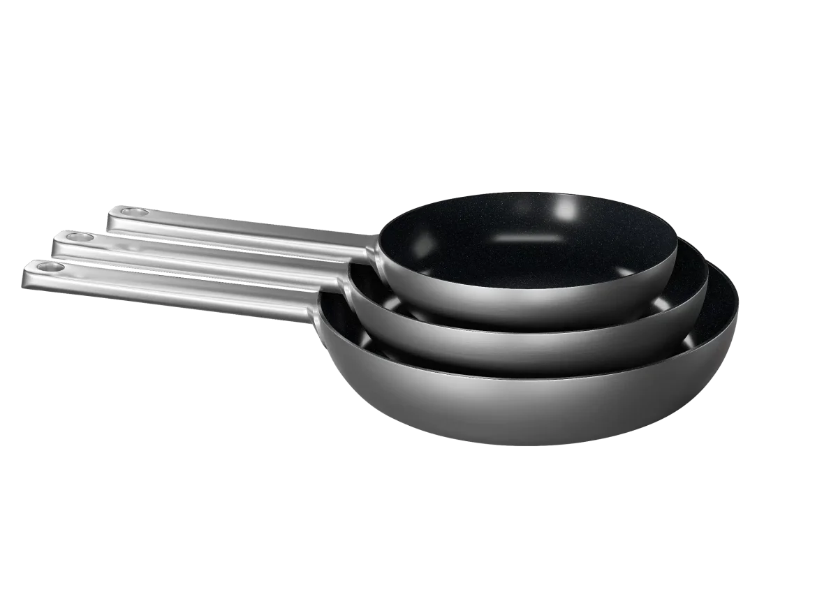 Deze koekenpannenset bestaat uit de koekenpannen 20cm + 24cm + 28cm en zijn voorzien van een 100% PFAS vrije keramische coating