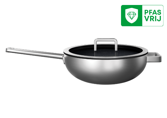 Het nederlandse merk Koqi heeft met hun pannen, die speciaal ontwikkeld zijn voor downdraft afzuiging, een schot in de roos! Schitterende design pannen gemaakt van de mooiste materialen en perfect voor wanneer je een kookplaat met geintegreerde afzuiging hebt zoals die van Bora, Miele, AEG of Siemens. Door het handige deksel wordt de stoom en nare etensgeuren direct geleid naar de afzuiging. Ook zijn de pannen makkelijk af te gieten zonder dat je de deksel schuin op de pan hoeft te leggen. Zie ook de bakpannen ,waaronder de koekenpannen en de wok. die zijn voorzien van een 100% PFAS vrije keramische antikleeflaag. De pannen zijn zowel los verkrijgbaar als in sets. In de sets heb je een stuk voordeel in prijs.