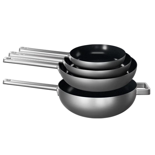 deze set bestaat uit de koekenpannen 20cm+24cm+28cm en de wok 28cm