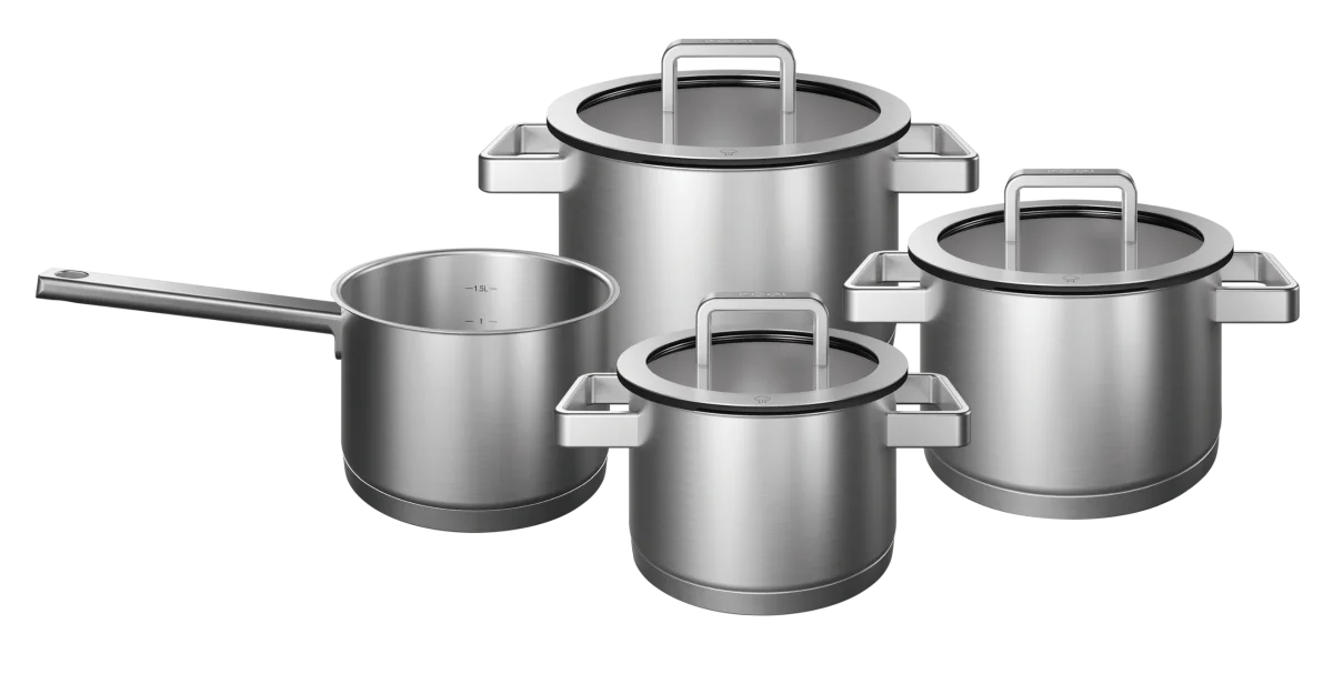 Deze pannenset bestaat uit een steelpan 16cm, kookpan 16cm+18cm+20cm.
