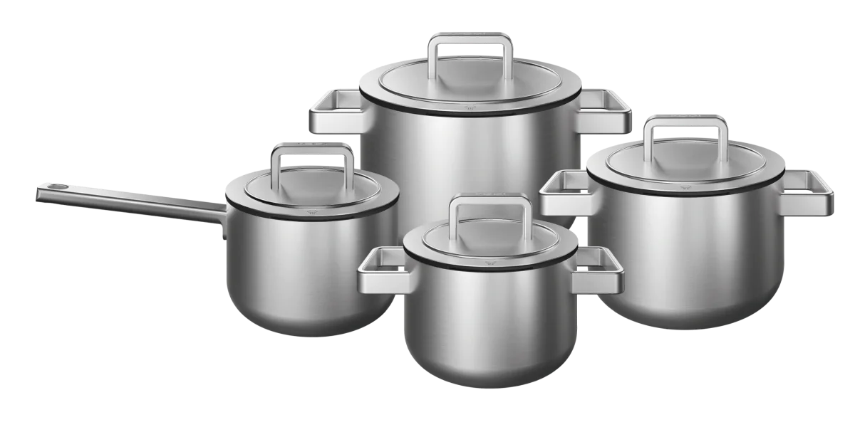 Deze pannenset bestaat uit een steelpan 16cm, kookpan 16cm+18cm+20cm.