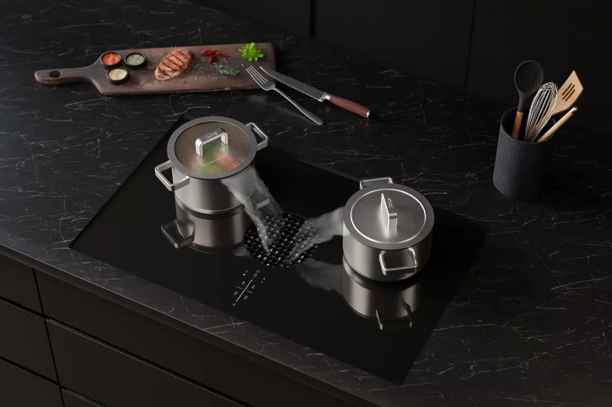 Het nederlandse merk Koqi heeft met hun pannen, die speciaal ontwikkeld zijn voor downdraft afzuiging, een schot in de roos! Schitterende design pannen gemaakt van de mooiste materialen en perfect voor wanneer je een kookplaat met geintegreerde afzuiging hebt zoals die van Bora, Miele, AEG of Siemens. Door het handige deksel wordt de stoom en nare etensgeuren direct geleid naar de afzuiging. Ook zijn de pannen makkelijk af te gieten zonder dat je de deksel schuin op de pan hoeft te leggen. Zie ook de bakpannen ,waaronder de koekenpannen en de wok. die zijn voorzien van een 100% PFAS vrije keramische antikleeflaag. De pannen zijn zowel los verkrijgbaar als in sets. In de sets heb je een stuk voordeel in prijs.