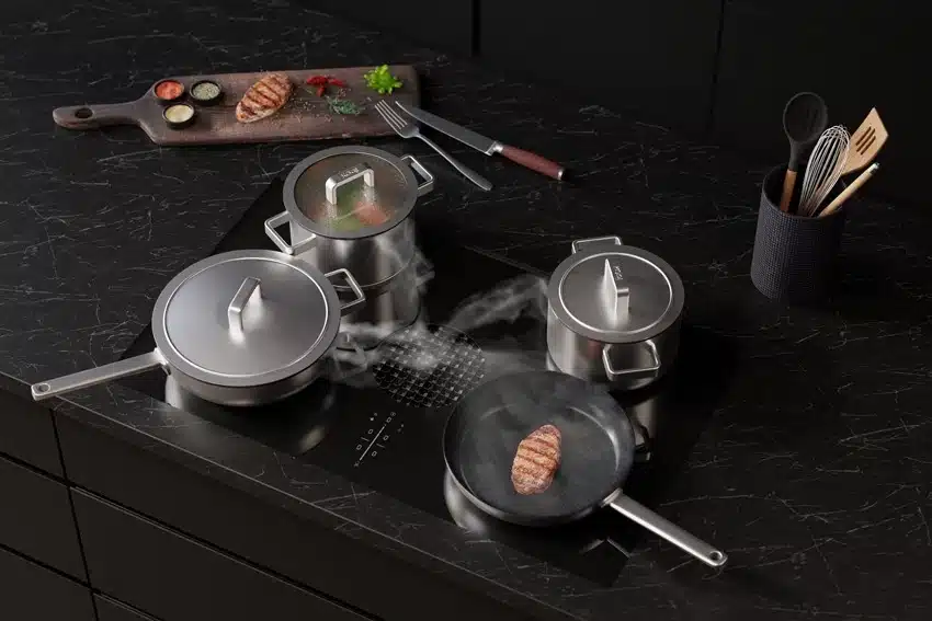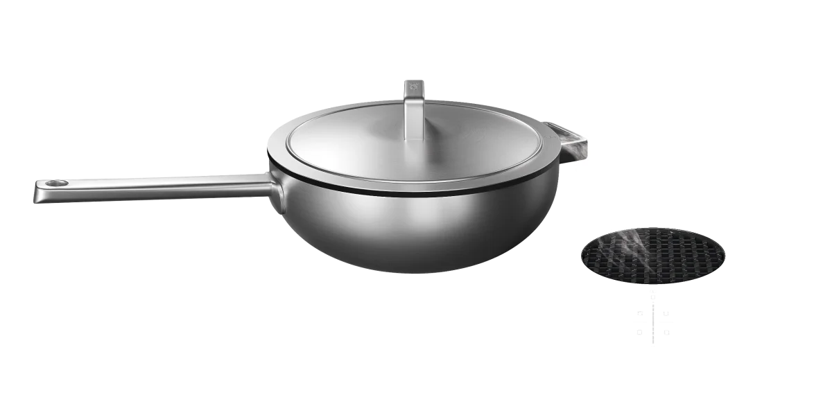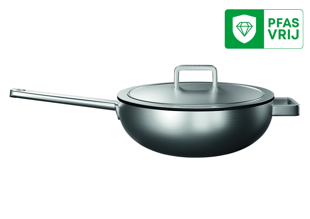 Het nederlandse merk Koqi heeft met hun pannen, die speciaal ontwikkeld zijn voor downdraft afzuiging, een schot in de roos! Schitterende design pannen gemaakt van de mooiste materialen en perfect voor wanneer je een kookplaat met geintegreerde afzuiging hebt zoals die van Bora, Miele, AEG of Siemens. Door het handige deksel wordt de stoom en nare etensgeuren direct geleid naar de afzuiging. Ook zijn de pannen makkelijk af te gieten zonder dat je de deksel schuin op de pan hoeft te leggen. Zie ook de bakpannen ,waaronder de koekenpannen en de wok. die zijn voorzien van een 100% PFAS vrije keramische antikleeflaag. De pannen zijn zowel los verkrijgbaar als in sets. In de sets heb je een stuk voordeel in prijs.