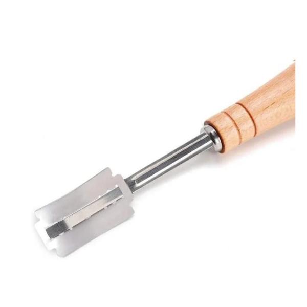 Het mesje is ideaal voor het insnijden van stokbrood, desembrood of andere broodsoorten. Dankzij het scherpe mesje snijd je moeiteloos in het deeg zonder het te beschadigen. Het stokbroodmes heeft een comfortabele houten handgreep en een roestvrijstalen houder waarin je het mesje eenvoudig kunt vastzetten.