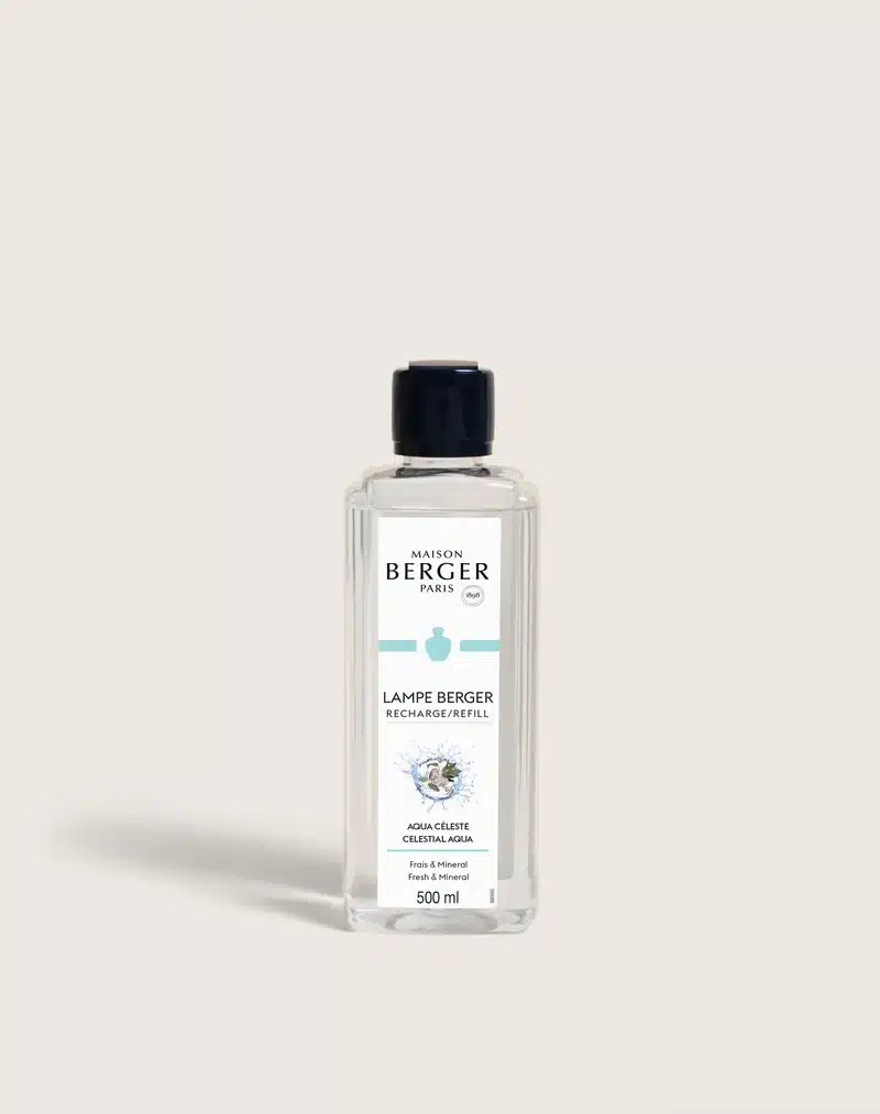 Lampe Berger huisparfum Aqua Céleste 500ml onthult een parfum geïnspireerd door de natuur en levendig water. Heldere sinaasappel, viooltjesblad en mariene accenten zorgen voor een kristalheldere opening die doet denken aan de frisheid van een ochtend aan het water. Het hart straalt met lelietje-van-dalen, fluweelzachte roos en aromatische salie voor een delicate, rustgevende bloemenharmonie. In de basis komen minerale tonen van grijze amber samen met eikenmos en patchouli, die een houtachtige diepte geven.