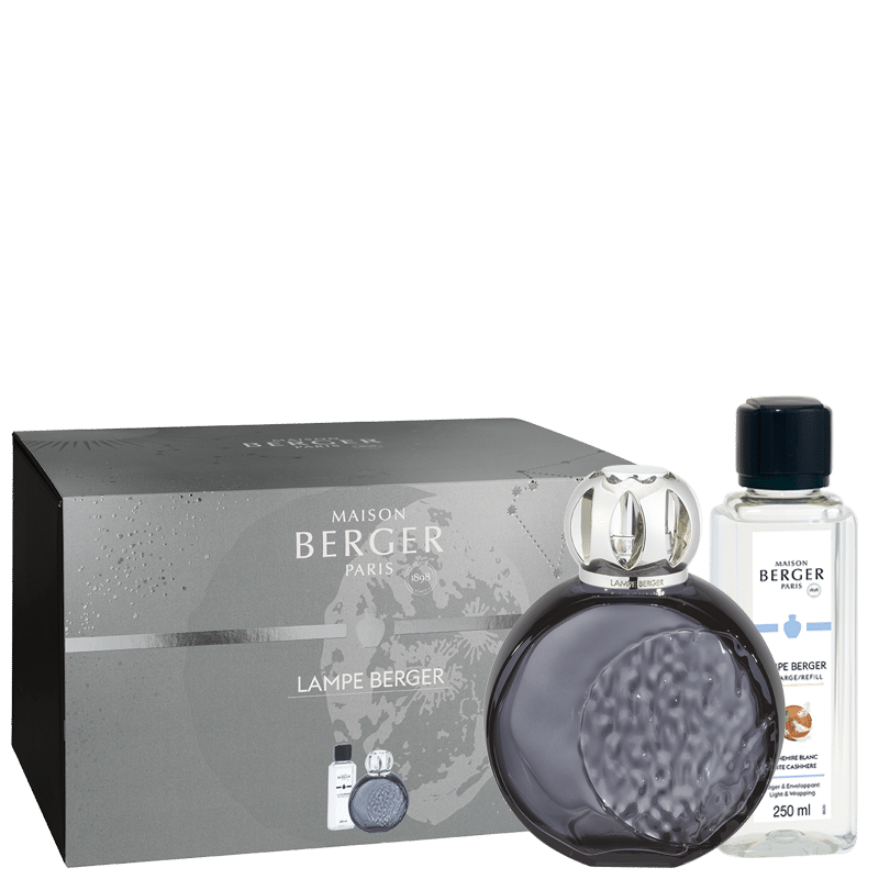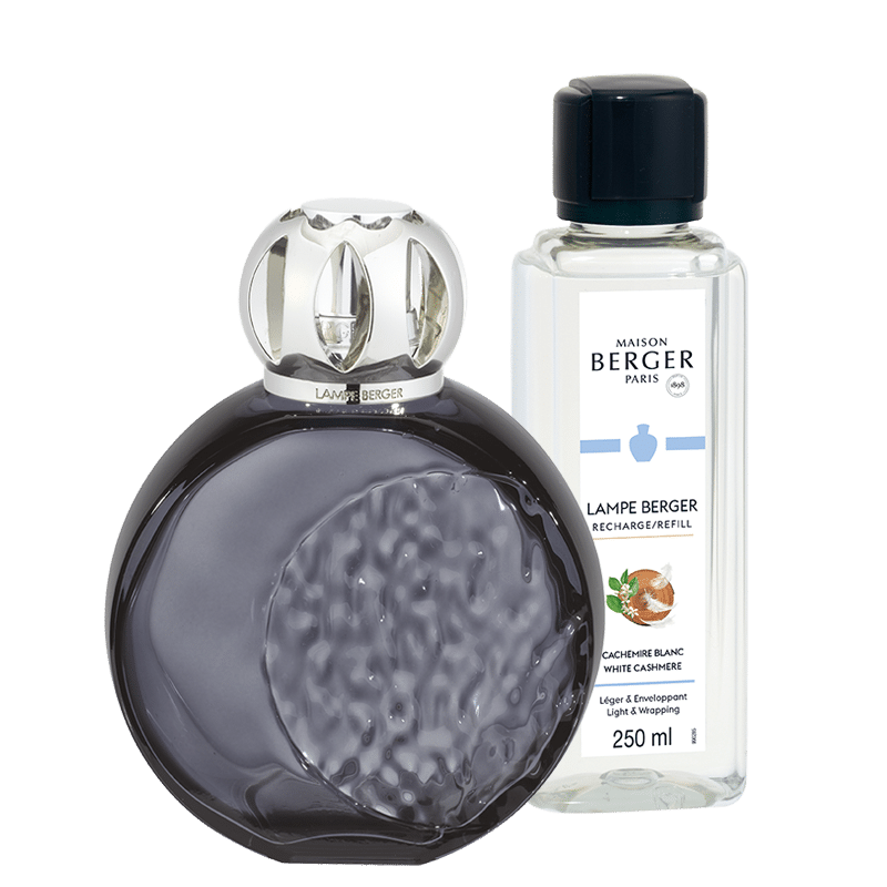 Deze futuristische giftset Lampe Berger Astral Gris is ontworpen door Rozenn Mainguené en nodigt u uit om met uw hoofd in de sterrenhemel te duiken. Dit object is geïnspireerd op de hemellichamen en sterren die samen het zonnestelsel vormen, en is hoofdzakelijk ontworpen rond het maanthema. De ronde, volle vorm doet denken aan de fase van de volle maan, terwijl aan de voorkant alleen de halve maan te zien is. De gladde zijde van het glas contrasteert met de andere helft, die is uitgewerkt met reliëfstructuren die herinneren aan de vele kraters op het oppervlak. Het geheel wordt geaccentueerd door een grijze minerale tint als verwijzing naar de oorspronkelijke kleur. Met de giftset Lampe Berger Astral Gris schept u een zachte sfeer met de poederachtige en delicate parfum van Cashmere Blanc. Maak het u lekker gezellig met de sensuele zachtheid van cashmeran, die de pracht van oranjebloesem ondersteunt op een achtergrond van witte muskusnoten, waardoor een echt comfortabel en betoverend geurresultaat ontstaat.