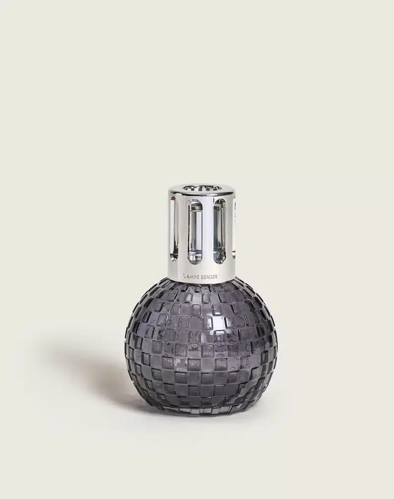 Het Lampe Berger Giftset Disco Grise onderscheidt zich door zijn ronde vorm en het dambordpatroon in glas, wat zorgt voor een moderne uitstraling. De grijze tint geeft een verfijnde toets aan uw interieur.