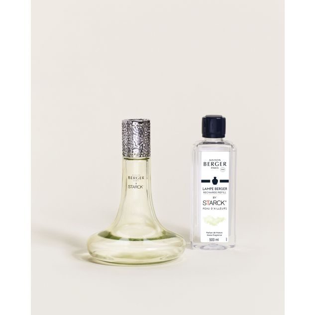 Dit is de prachtige groene brander uit de Maison Berger by Starck collectie. In dit giftsetje zit het speciale huisparfum Peau d’ Ailleurs in een 500 ml flacon.