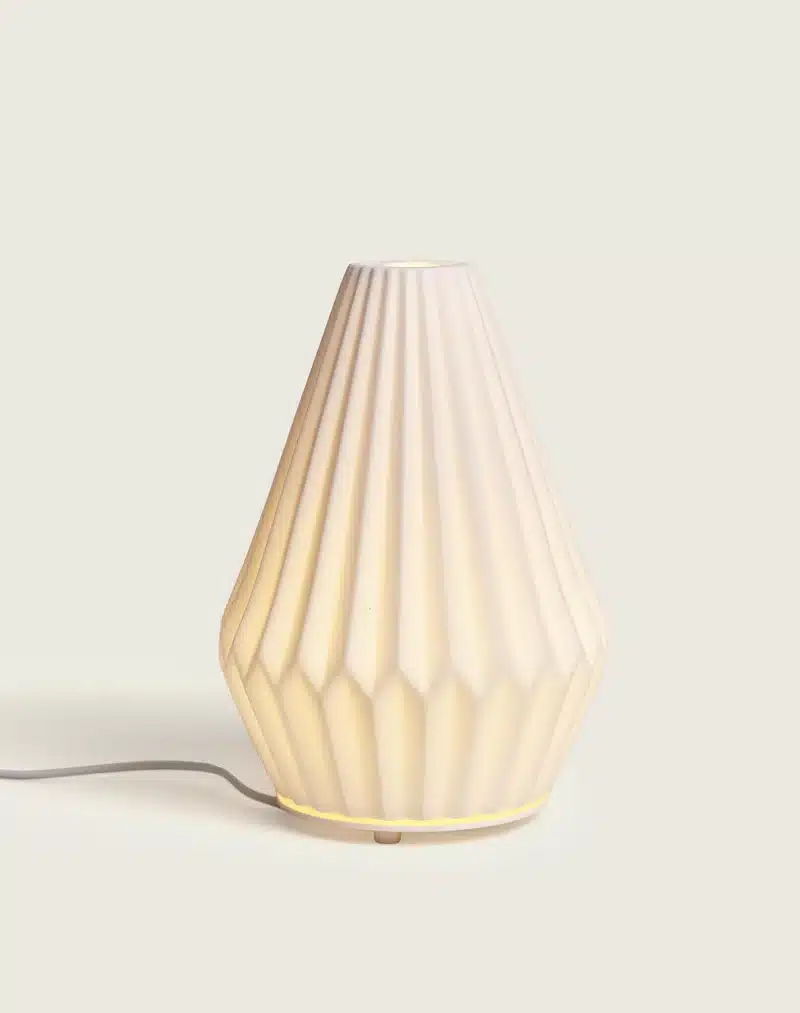 De Mistdiffuser Cône valt op door zijn strakke design, geïnspireerd op de geometrie van een kegel, en past verfijnd in elk modern interieur. De witte tint verlicht subtiel uw ruimte en voegt een tijdloze toets toe aan het decor.