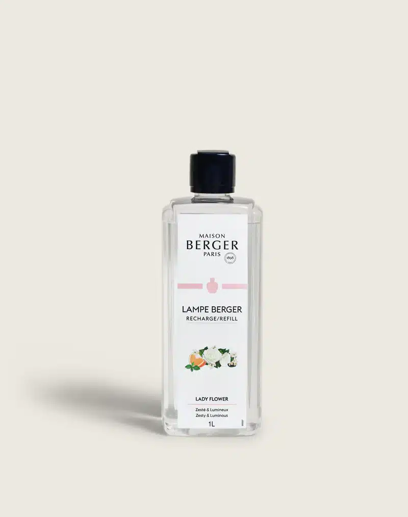 De Lampe Berger huisparfum Lady Flower 1 liter verspreidt een elegante bloemenparfum in uw interieur. De sprankelende topnoten van bergamot, mandarijn en grapefruit prikkelen de zintuigen. In het hart ontvouwt zich een betoverend boeket van jasmijn, mimosa en roos, terwijl de basisnoten van amber, edele houtsoorten en patchouli zorgen voor een verfijnde en warme finishing touch. Met een inhoud van 1 liter garandeert deze navulling een langdurige en continue parfumervaring.