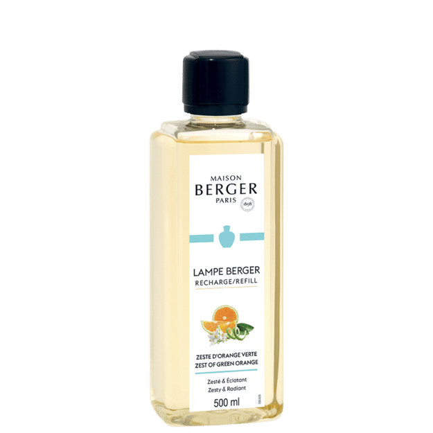 Het Lampe Berger huisparfum Zeste d’Orange Verte 500ml weet de atmosfeer op vrolijke wijze dynamiek te geven. De zoete, frisse geuren met het licht accent van groene sinaasappel geven dit huisparfum onmiddellijk een energiek karakter. De oranjebloesem verfraait de welriekende schoonheid van de citrusvruchten en geeft deze een nieuwe intensiteit. En de muskusachtige basisnoot schudt alle tonaliteiten wakker tot een mooi harmonisch geheel. Enkele fruitige en bloemige parfumnoten maken de compositie compleet, voor een onweerstaanbaar sprankelend en delicaat feelgood resultaat. Dit Lampe Berger huisparfum Zeste d’Orange Verte 500 ml nodigt uit tot zomers nietsdoen en zijn verleidelijke moderniteit begeleidt u tijdens de mooie zomerdagen met een verkwikkende geur in al uw vertrekken. De atmosfeer wordt tegelijkertijd gezuiverd dankzij het gepatenteerde systeem van de Lampe Berger. Dit zonnige, stralende en luchtige huisparfum verspreidt zich op aangename wijze en biedt u een moment van ontspanning en absolute overvloed.