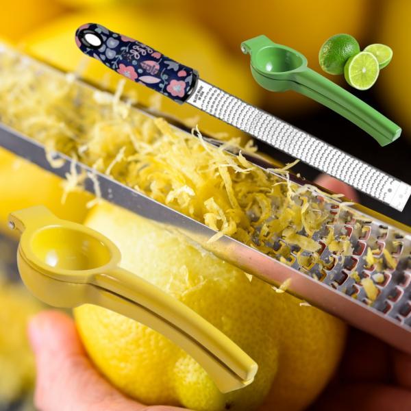 De zest (schilletjes) van de citroen en limoen zijn dus veel minder zuur, deze gebruik je bij bakken en bij gerechten die al bijna klaar zijn en nog even een frisje nodig hebben. Let bij het raspen wel op dat je het wit niet mee raspt want die is bitter. Microplane maakt perfecte zesteurs, of kies voor een eenvoudig model van Brabantia.